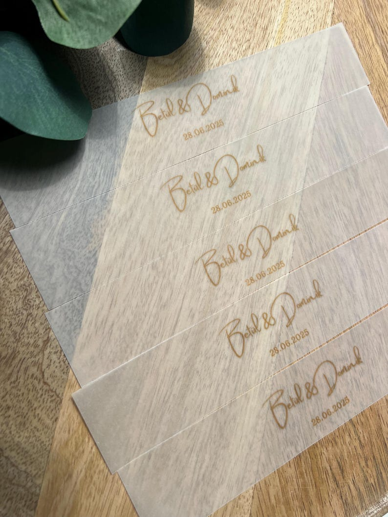Personalisierte transparente Serviettenbänder für jeden Anlass.